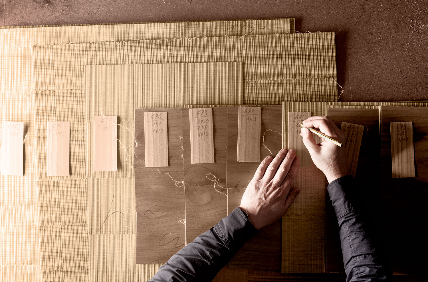 La maquinaria moderna ocupa la mayor parte de la superficie de su factoría pero los dedos y ojos siguen siendo una parte fundamental del proceso de fabricación de muebles. Son esos dedos y esos ojos los que seleccionan nudos y flores en las chapas de roble; los que se encargan de que un mueble luzca el mejor tostado que caracteriza al nogal; o los que son capaces de vislumbrar los destellos rosados que emitirá en los años siguientes el roble americano al envejecer.