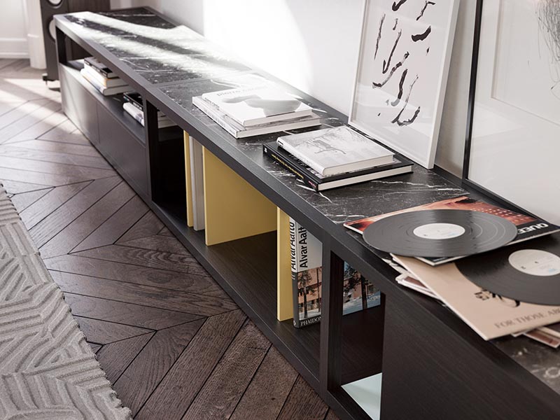 La tipología de mueble bajo que sirve como soporte para la televisión, frente al cual nos sentamos en el sofá, sirve también para que almacenemos en él nuestros libros y revistas, y lo decoremos con diferentes objetos como flores, marcos, lámparas…