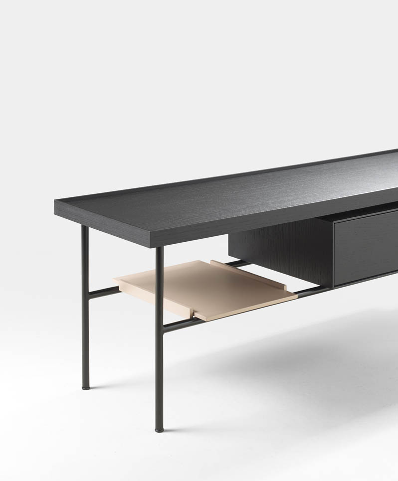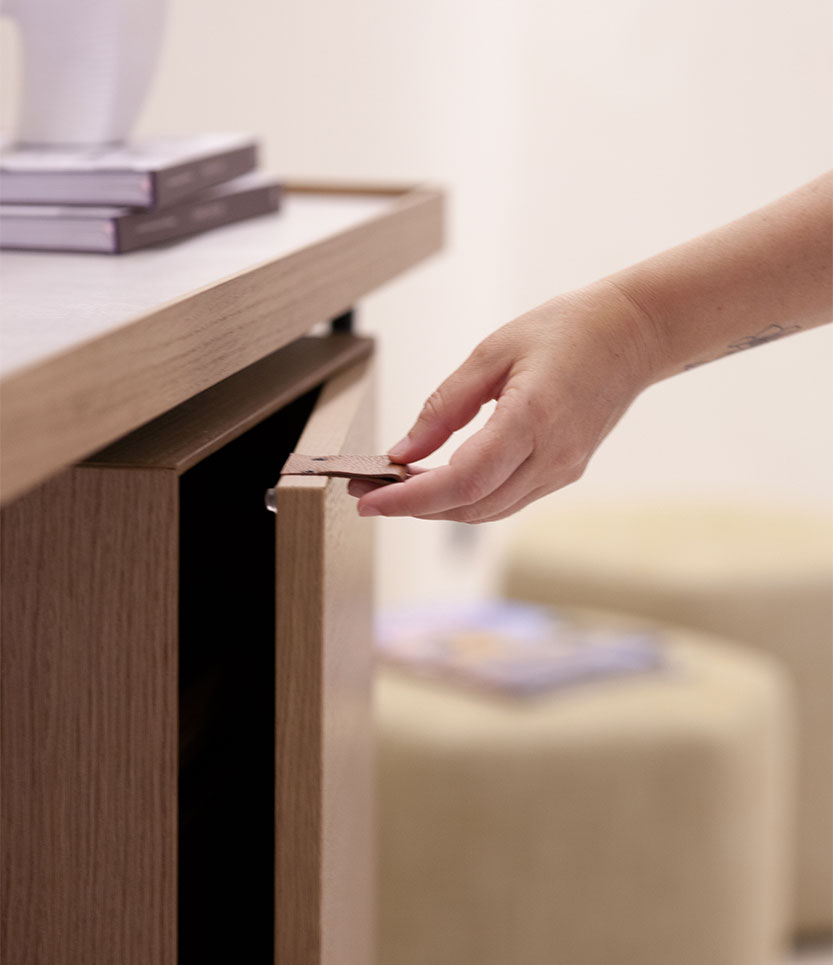Todas las piezas que componen la colección Kutxa tienen un toque escultórico pero sin referencias directas a artistas o a sus obras. La idea es que estos muebles contribuyan a crear espacios más sosegados y cuidados, antes que una optimización del espacio de almacenaje. Kutxa es una colección de muebles con diferentes figuras donde cada pieza tiene personalidad propia y cumple una función dentro de una lógica gráfica.