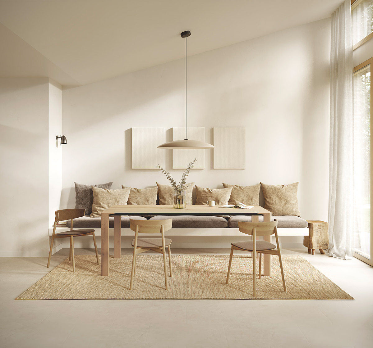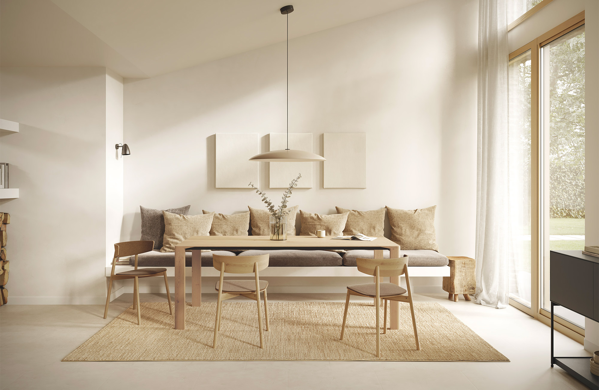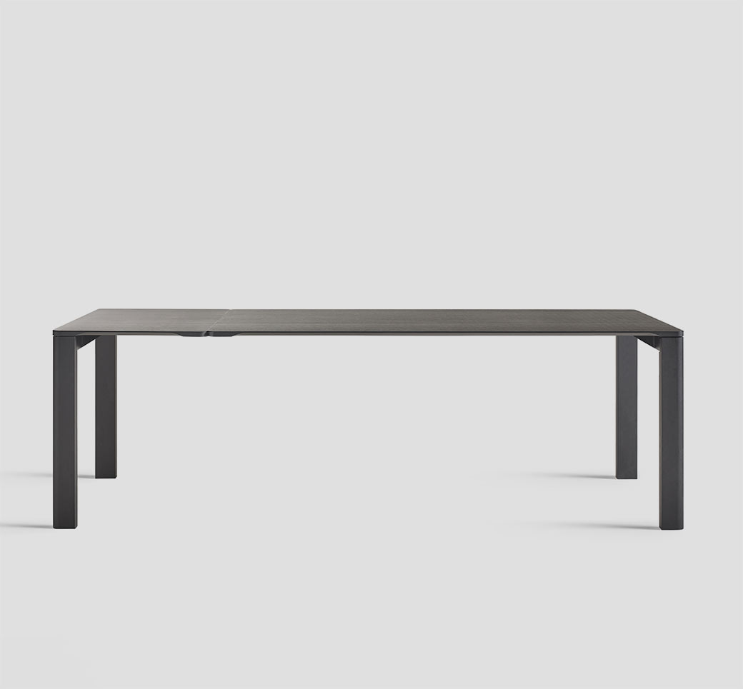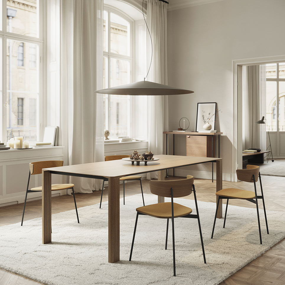 ‘Sendo’ significa ‘robusto’ en euskera y es el nombre de la nueva mesa de comedor diseñada por Ibon Arrizabalaga. Está disponible en diferentes medidas y dos versiones, una fija y otra extensible. Su singularidad radica en el marcado contraste entre la encimera (amplia y ágil, diseñada para transmitir una gran sensación de ligereza) y los pies, unas vigorosas piezas de madera. La encimera puede personalizarse en todas las maderas de Treku y en acabado fénix.