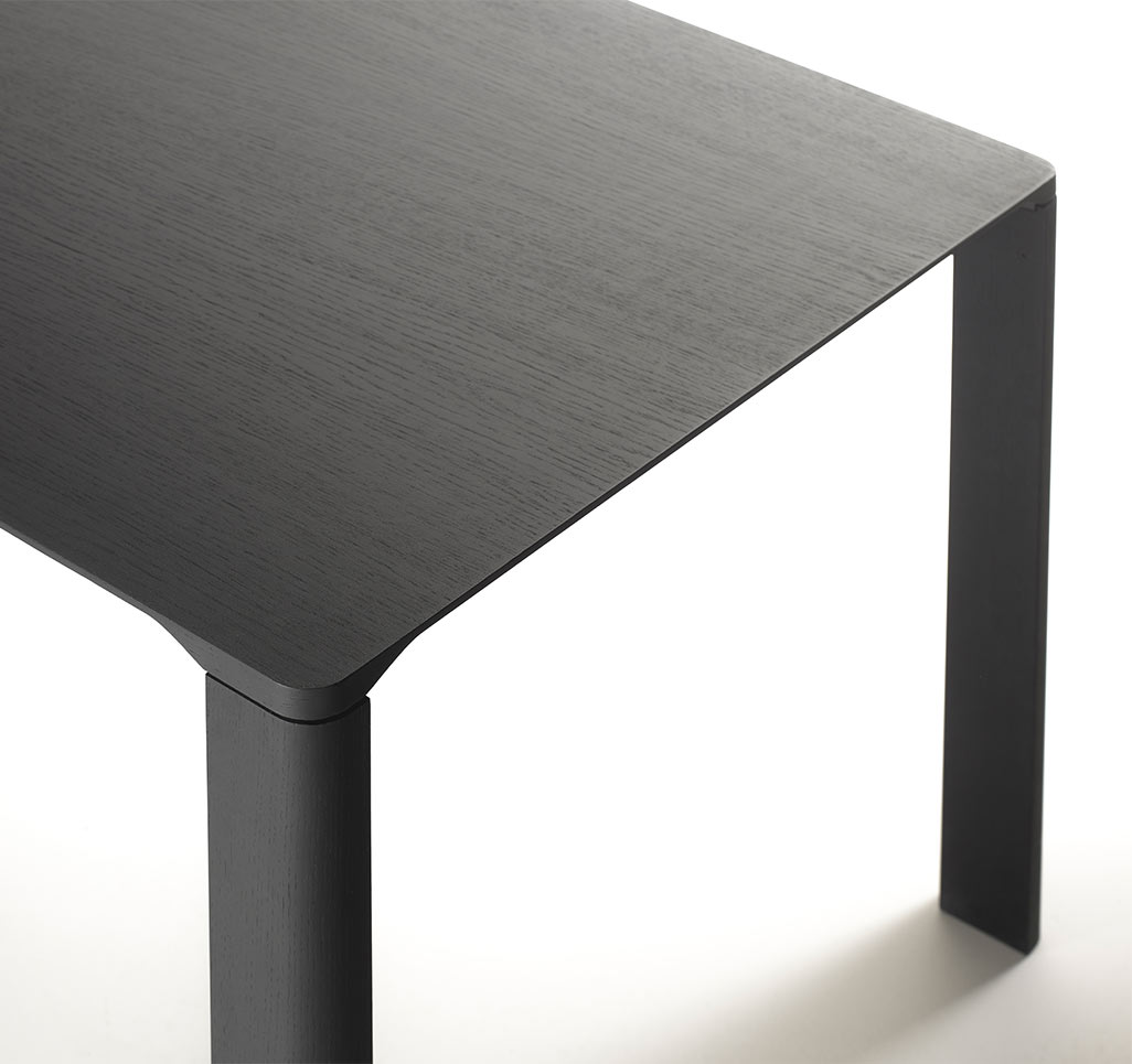 Detalle de la bella unión del pie y la encimera de la mesa Sendo.